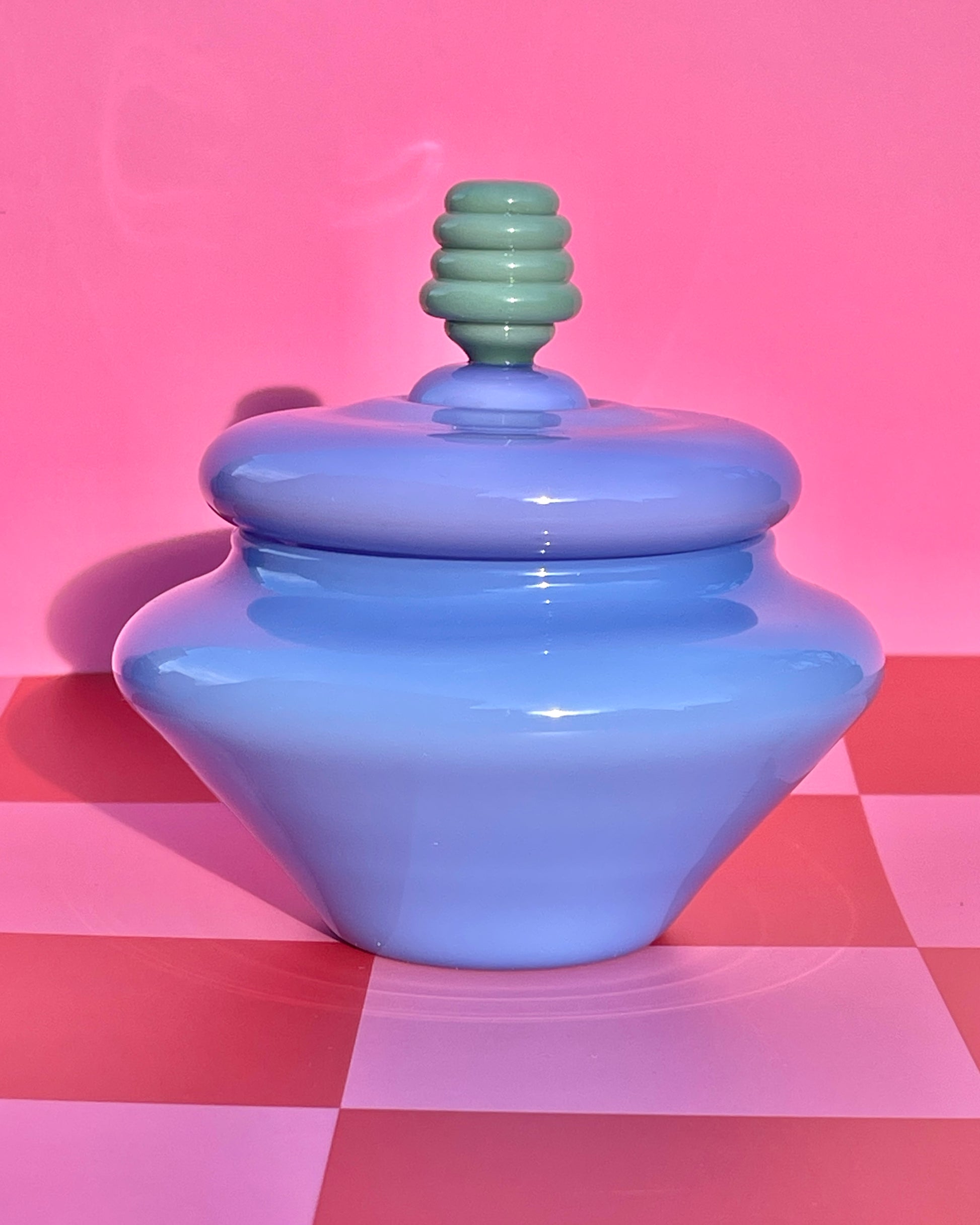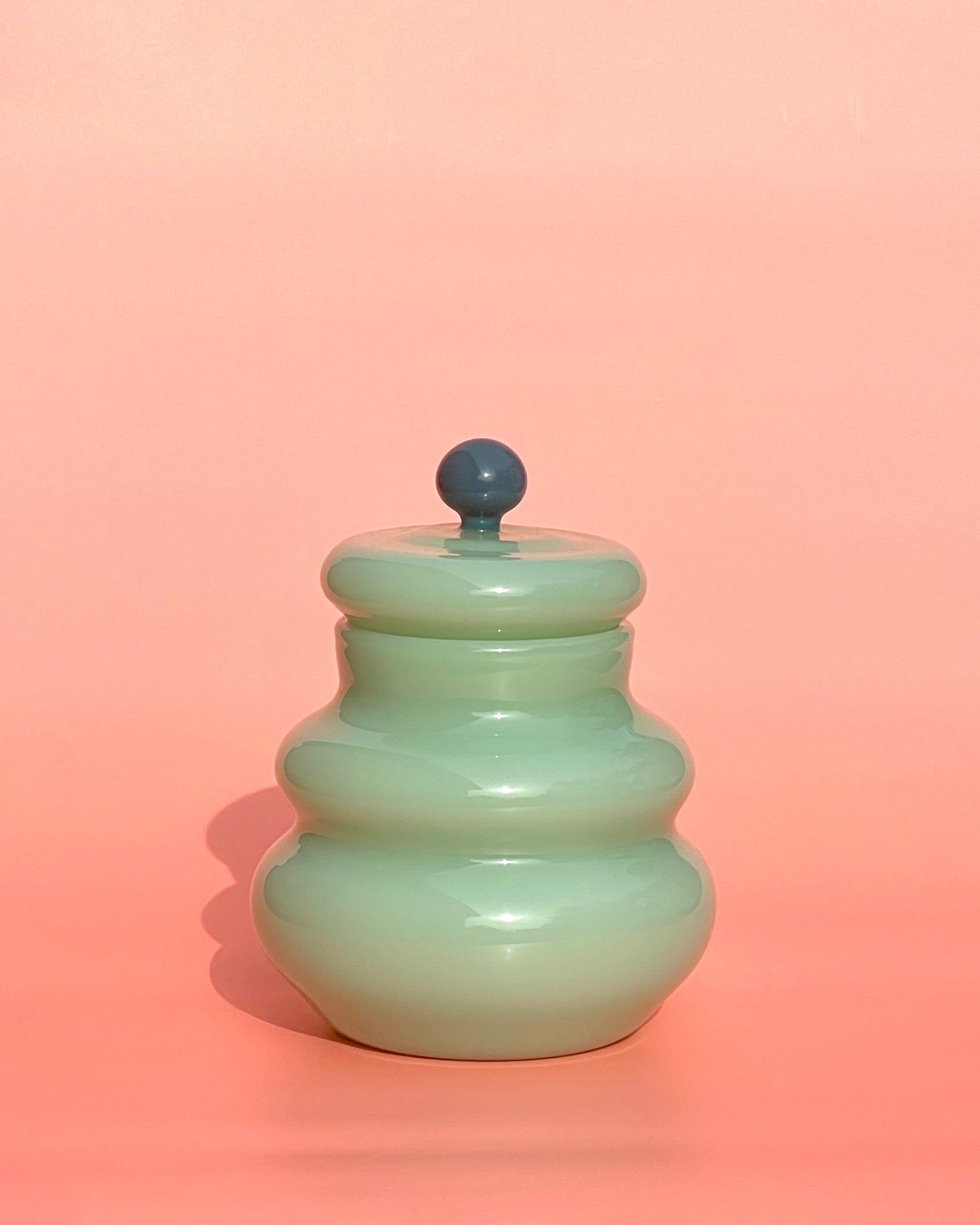 The idea for these lil jars started as a need for a sugar bowl and just grew from there. I became very infatuated with making a lid fit a vessel and then I just had to add my funky shapes and colors! These Jars can be for anything; sugar, salt, cotton balls, wishes - whatever you want to put in there.